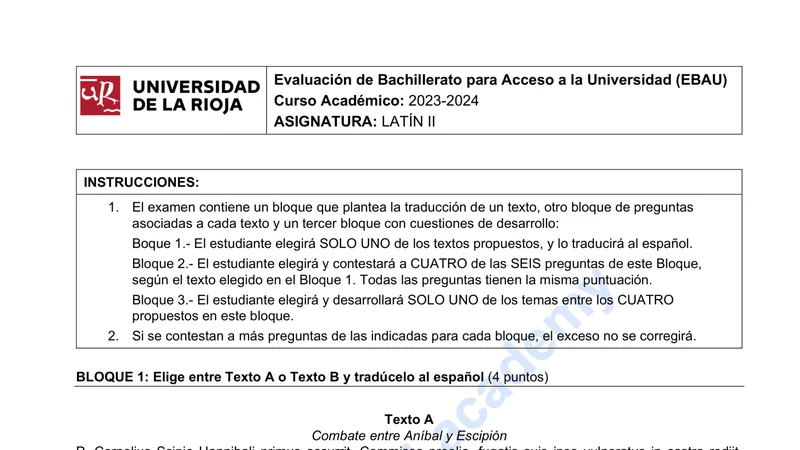 Reservar clase gratis →Examen de Latín II selectividad La Rioja (Ordinaria 2024)