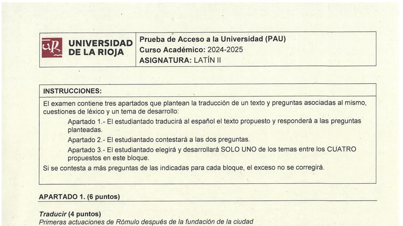 Examen PAU Latín II selectividad La Rioja — Ordinaria 2025
