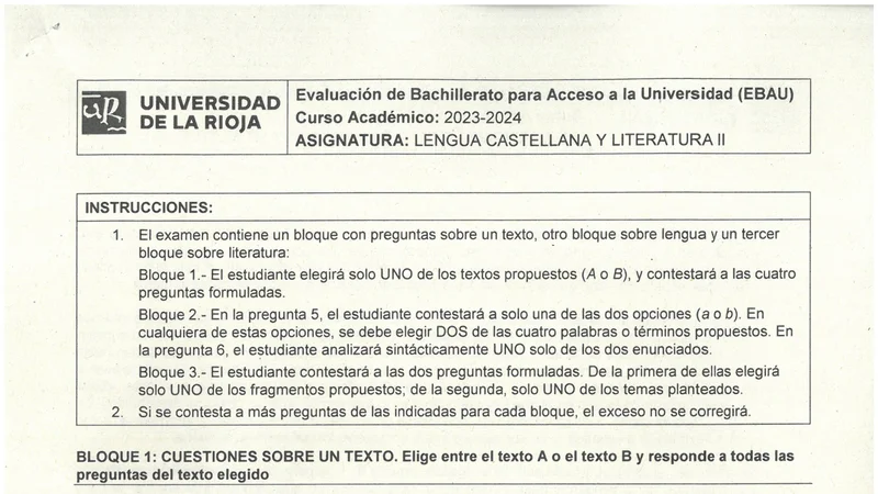 Examen PAU Lengua Castellana selectividad La Rioja — Ordinaria 2024