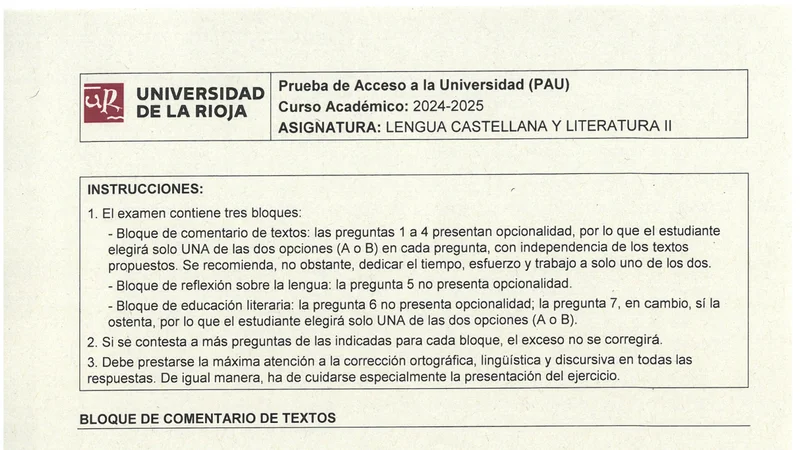 Examen PAU Lengua Castellana selectividad La Rioja — Extraordinaria 2025