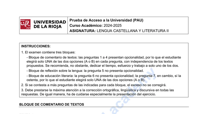 Reservar clase gratis →Examen de Lengua Castellana selectividad La Rioja (Ordinaria 2025)