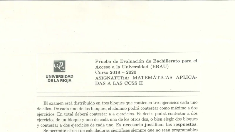 Examen PAU Matemáticas CCSS selectividad La Rioja — Extraordinaria 2020