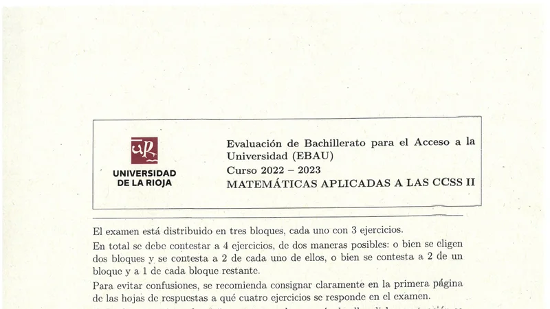 Reservar clase gratis →Examen de Matemáticas CCSS selectividad La Rioja (Extraordinaria 2023)