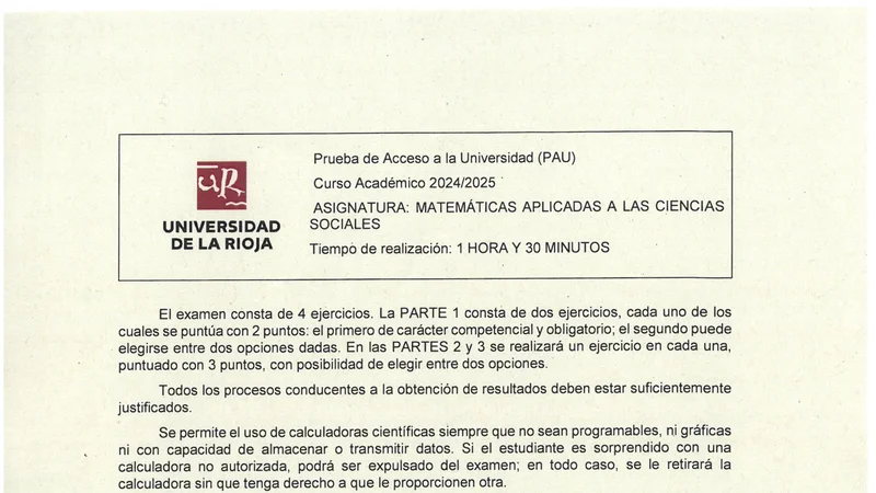 Examen PAU Matemáticas CCSS selectividad La Rioja — Extraordinaria 2025