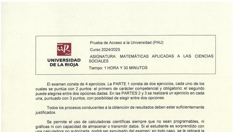 Examen PAU Matemáticas CCSS selectividad La Rioja — Ordinaria 2025