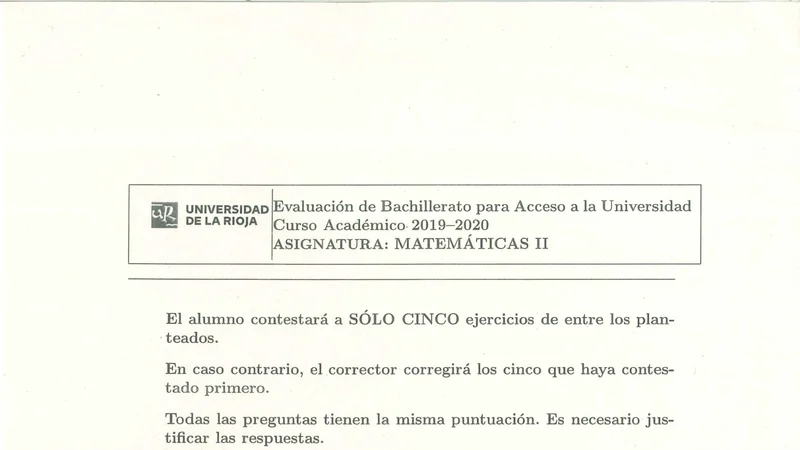 Reservar clase gratis →Examen de Matemáticas II selectividad La Rioja (Ordinaria 2020)