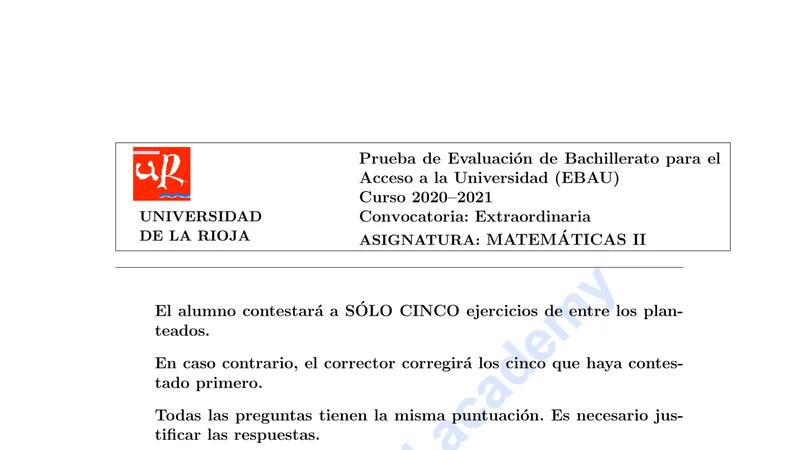 Reservar clase gratis →Examen de Matemáticas II selectividad La Rioja (Extraordinaria 2021)