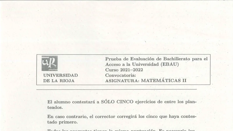 Reservar clase gratis →Examen de Matemáticas II selectividad La Rioja (Ordinaria 2022)