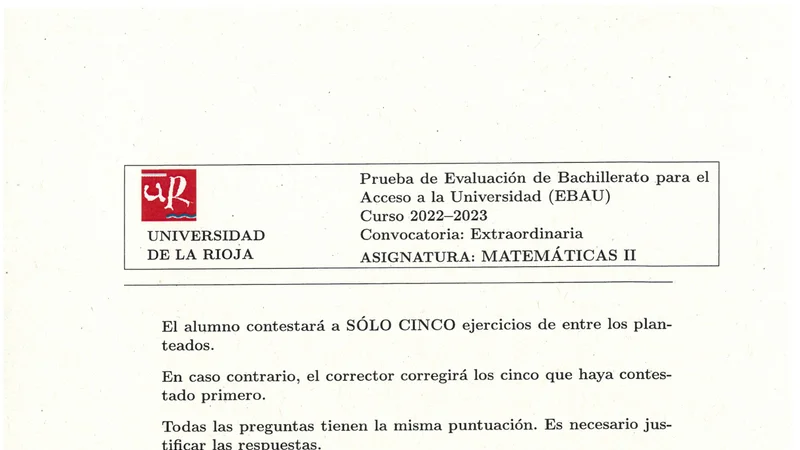 Examen PAU Matemáticas II selectividad La Rioja — Extraordinaria 2023