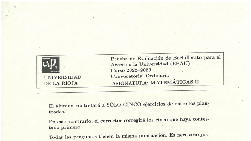 Examen PAU Matemáticas II selectividad La Rioja — Ordinaria 2023