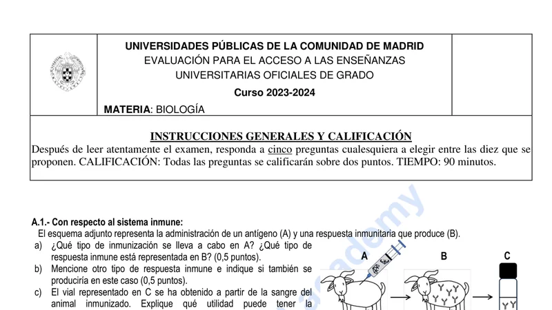 Reservar clase gratis →Examen de Biología selectividad Madrid (Ordinaria 2024)