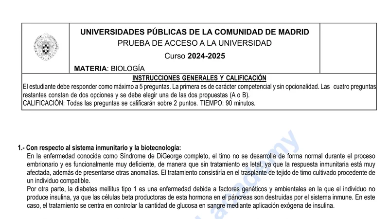 Reservar clase gratis →Examen de Biología selectividad Madrid (Extraordinaria 2025)