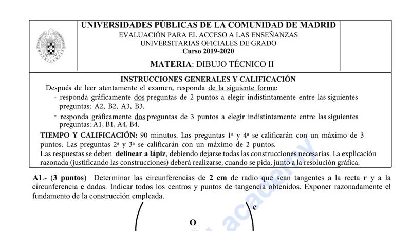 Examen de Dibujo Técnico II selectividad Comunidad de Madrid — Ordinaria 2020