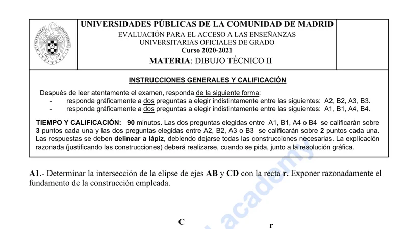 Examen de Dibujo Técnico II selectividad Comunidad de Madrid — Extraordinaria 2021