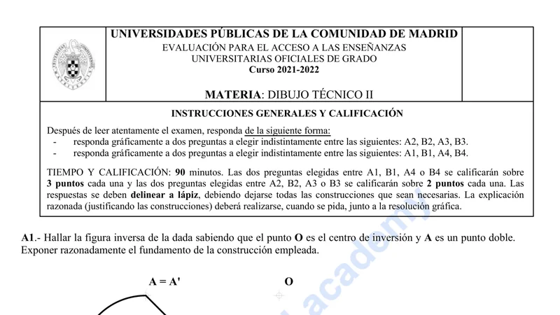 Examen de Dibujo Técnico II selectividad Comunidad de Madrid — Extraordinaria 2022