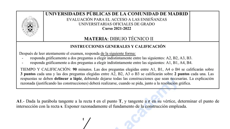 Examen de Dibujo Técnico II selectividad Comunidad de Madrid — Ordinaria 2022