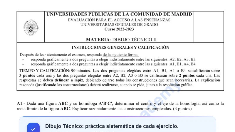 Reservar clase gratis →Examen de Dibujo Técnico II selectividad Comunidad de Madrid (Extraordinaria 2023)