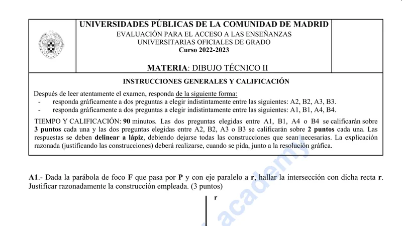 Examen de Dibujo Técnico II selectividad Comunidad de Madrid — Ordinaria 2023