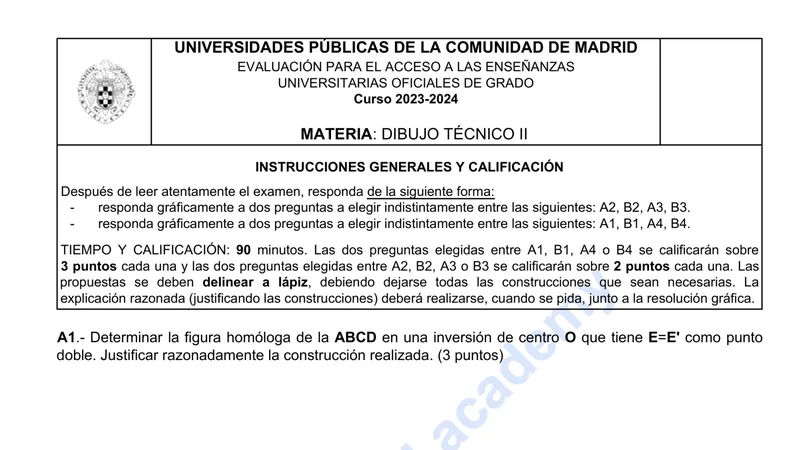 Examen de Dibujo Técnico II selectividad Comunidad de Madrid — Extraordinaria 2024