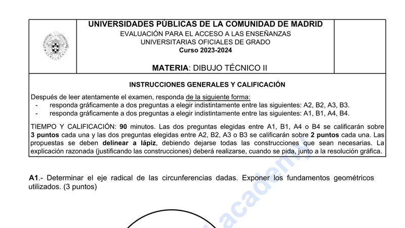 Examen de Dibujo Técnico II selectividad Comunidad de Madrid — Ordinaria 2024