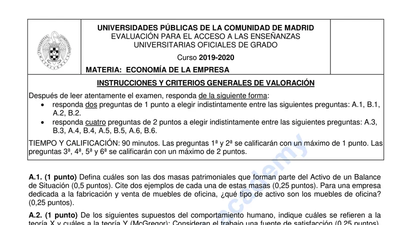 Reservar clase gratis →Examen de Economía selectividad Madrid (Ordinaria 2020)