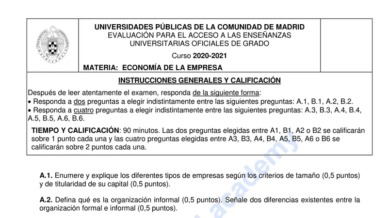 Reservar clase gratis →Examen de Economía selectividad Madrid (Extraordinaria 2021)