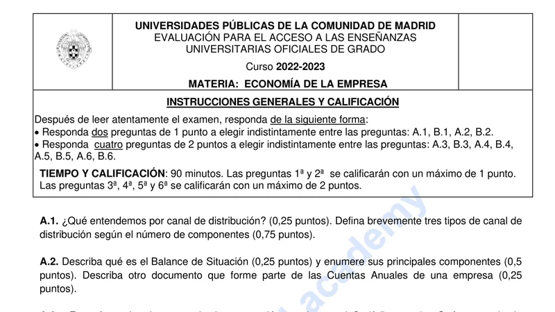 Reservar clase gratis →Examen de Economía selectividad Madrid (Ordinaria 2023)