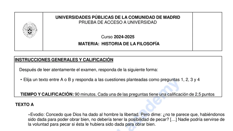 Examen de Historia de la Filosofía selectividad Comunidad de Madrid — Ordinaria 2025