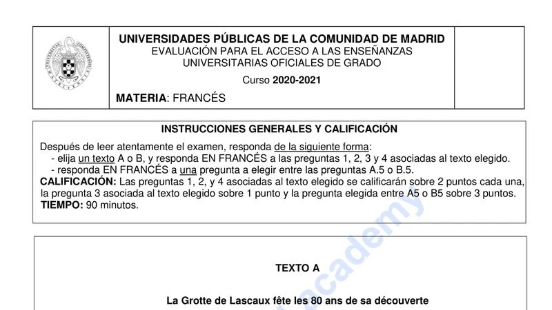 Examen PAU Francés selectividad Madrid — Extraordinaria 2021