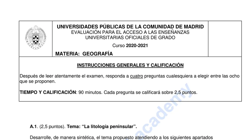 Reservar clase gratis →Examen de Geografía selectividad Madrid (Extraordinaria 2021)
