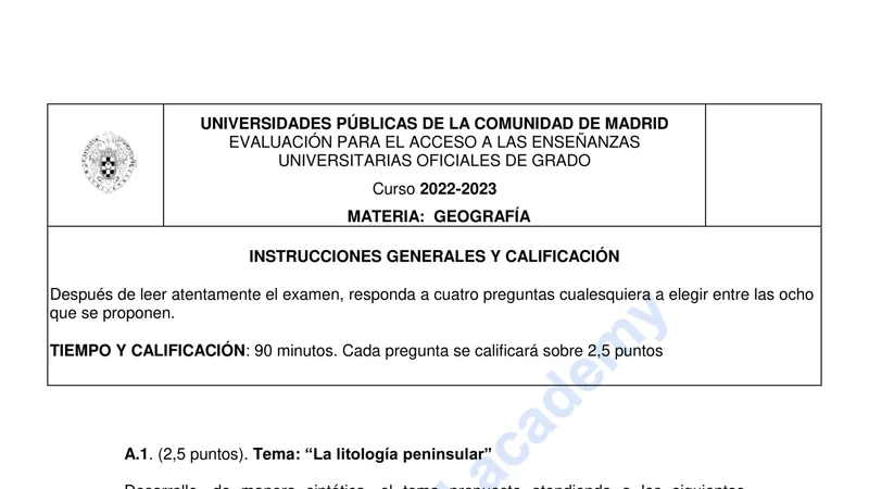 Reservar clase gratis →Examen de Geografía selectividad Madrid (Extraordinaria 2023)