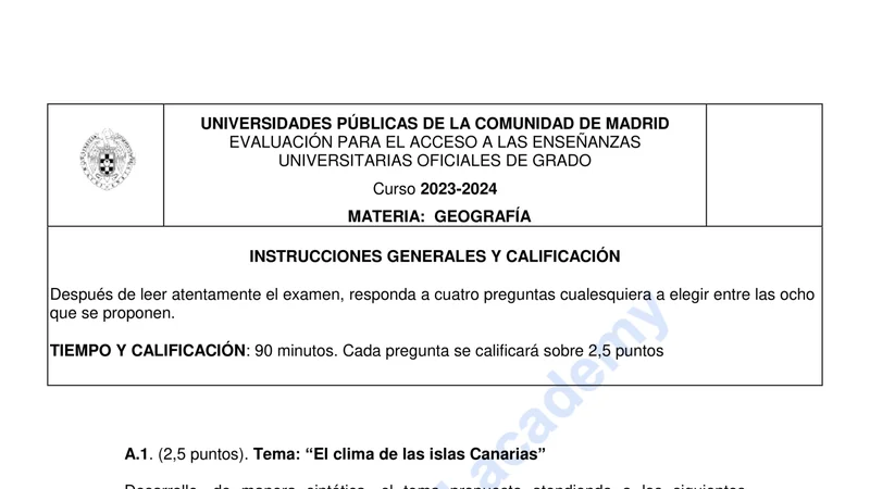 Reservar clase gratis →Examen de Geografía selectividad Madrid (Ordinaria 2024)