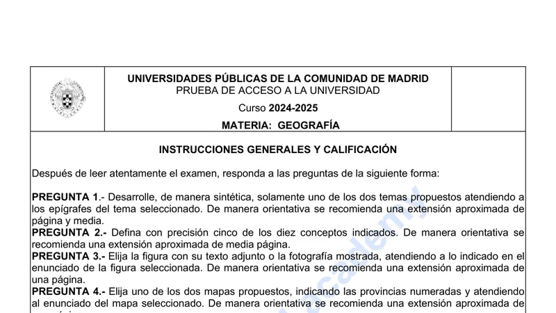 Reservar clase gratis →Examen de Geografía selectividad Madrid (Ordinaria 2025)