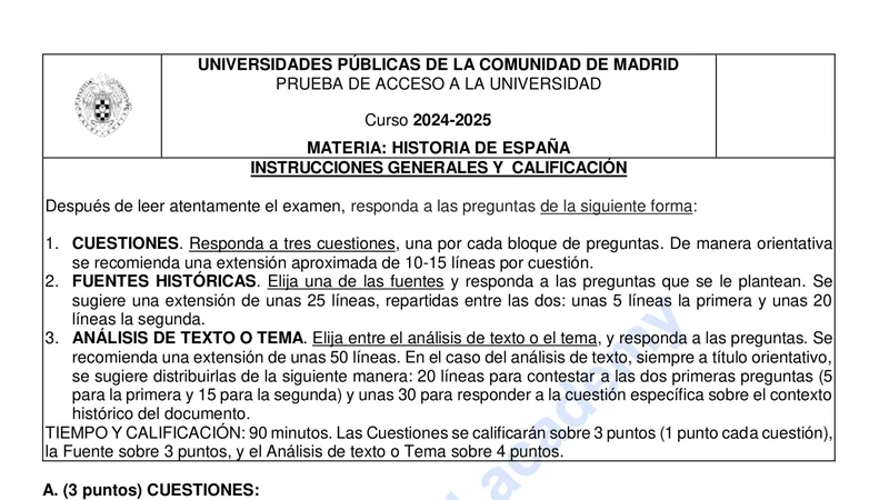 Reservar clase gratis →Examen de Historia de España selectividad Madrid (Extraordinaria 2025)