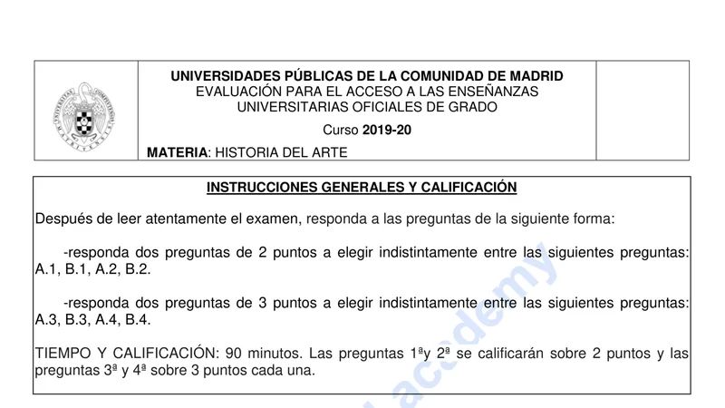 Reservar clase gratis →Examen de Historia del Arte selectividad Madrid (Extraordinaria 2020)