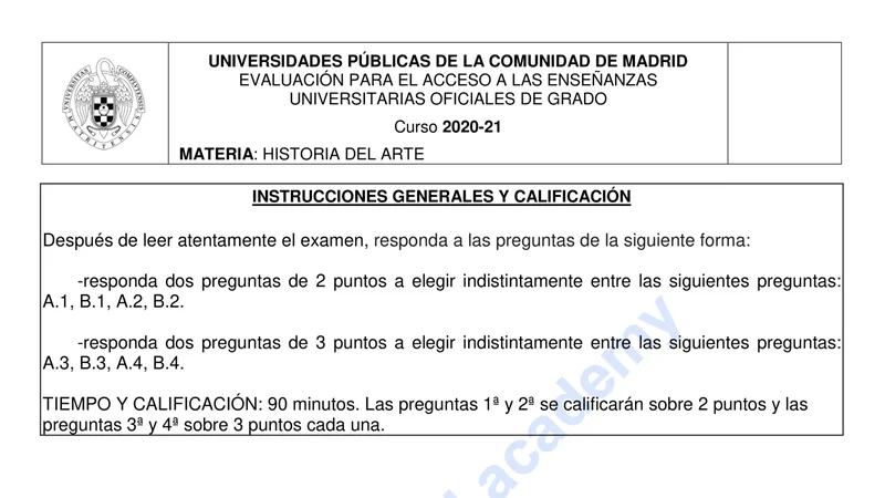 Reservar clase gratis →Examen de Historia del Arte selectividad Madrid (Ordinaria 2021)