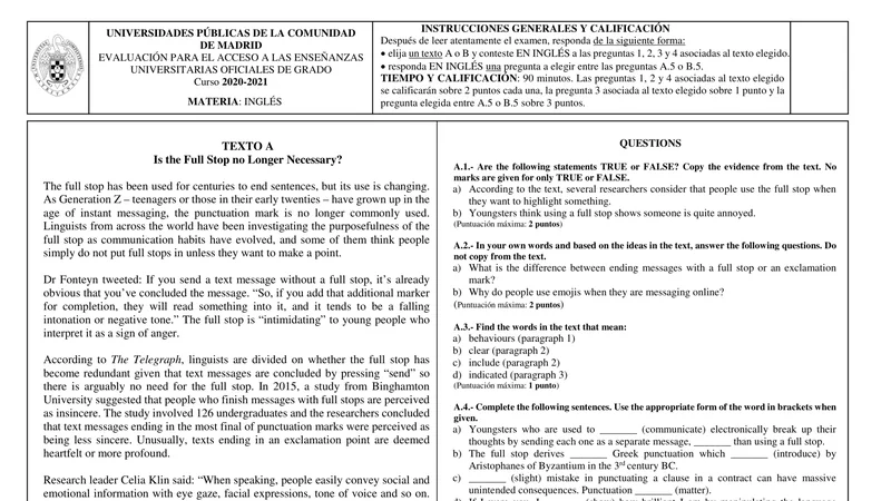 Examen PAU Inglés selectividad Madrid — Ordinaria 2021