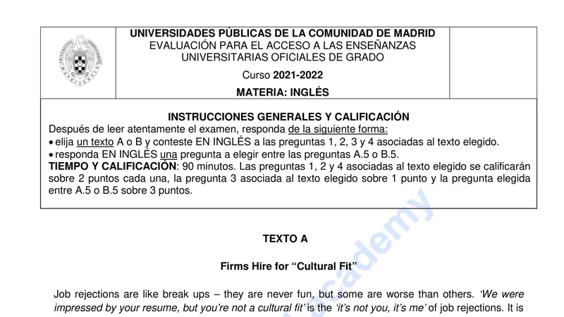 Reservar clase gratis →Examen de Inglés selectividad Madrid (Ordinaria 2022)