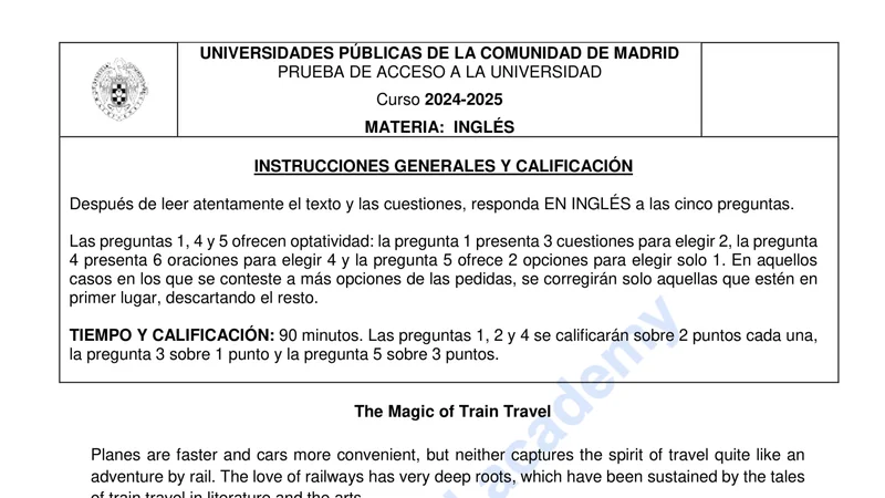 Examen PAU Inglés selectividad Madrid — Ordinaria 2025