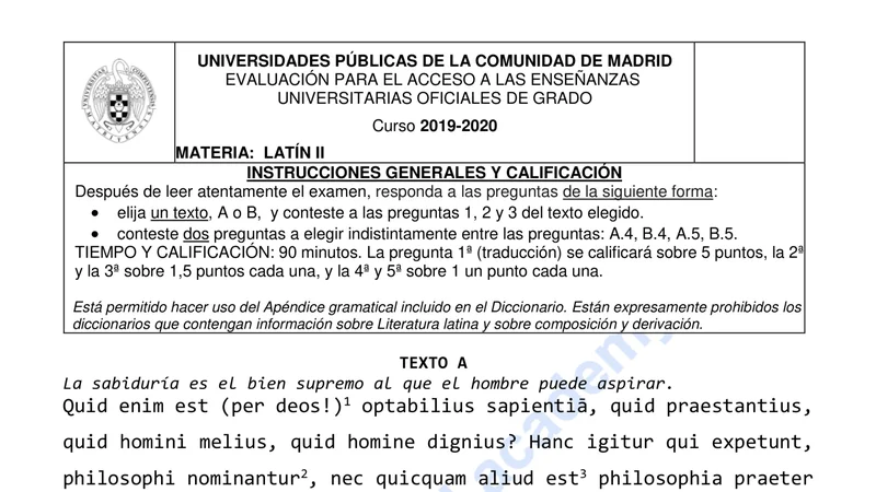 Reservar clase gratis →Examen de Latín II selectividad Madrid (Extraordinaria 2020)
