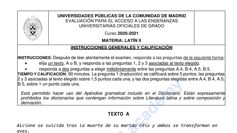 Reservar clase gratis →Examen de Latín II selectividad Madrid (Ordinaria 2021)
