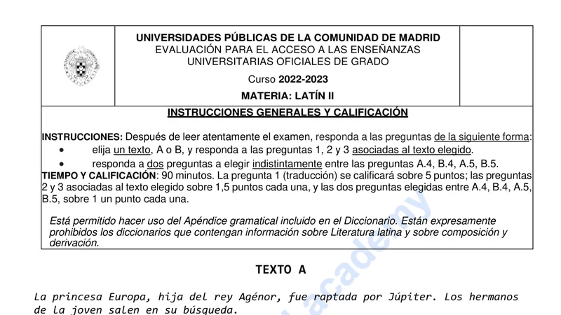 Reservar clase gratis →Examen de Latín II selectividad Madrid (Extraordinaria 2023)