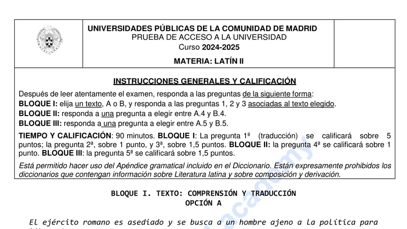 Reservar clase gratis →Examen de Latín II selectividad Madrid (Extraordinaria 2025)