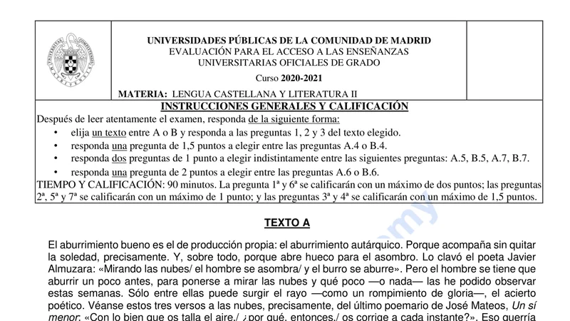 Examen PAU Lengua Castellana selectividad Madrid — Ordinaria 2021