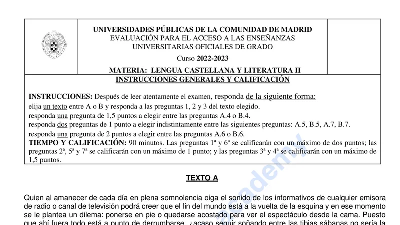 Examen PAU Lengua Castellana selectividad Madrid — Extraordinaria 2023