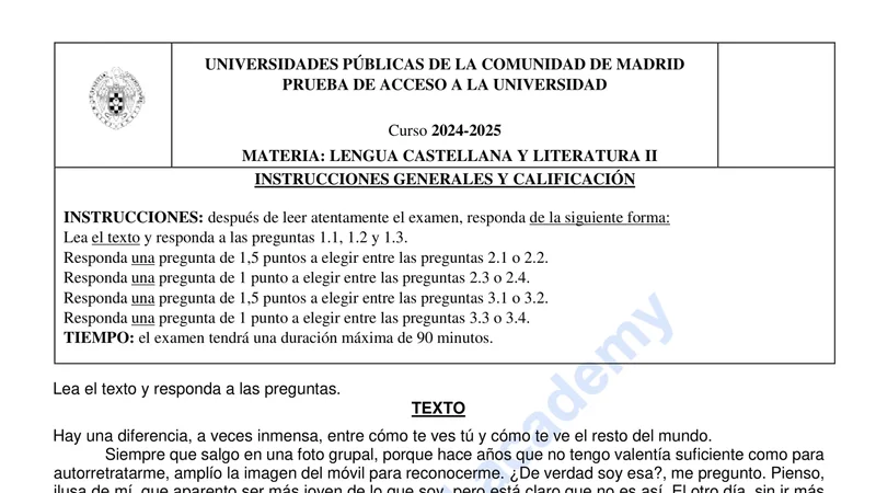 Examen PAU Lengua Castellana selectividad Madrid — Extraordinaria 2025