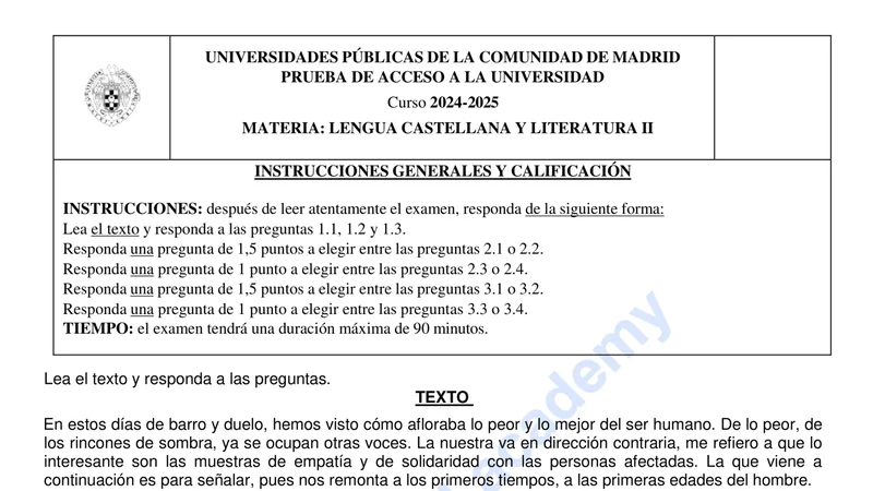 Reservar clase gratis →Examen de Lengua Castellana selectividad Madrid (Ordinaria 2025)