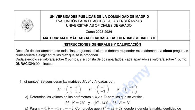 Reservar clase gratis →Examen de Matemáticas CCSS selectividad Madrid (Extraordinaria 2024)