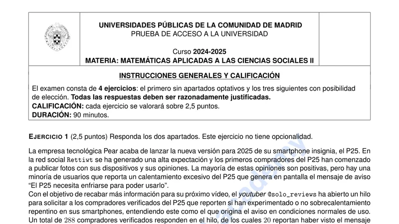 Examen PAU Matemáticas CCSS selectividad Madrid — Extraordinaria 2025