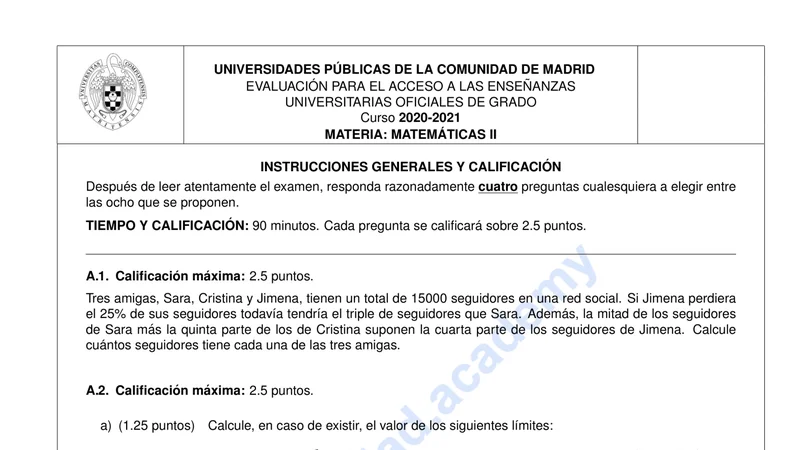 Reservar clase gratis →Examen de Matemáticas II selectividad Madrid (Extraordinaria 2021)